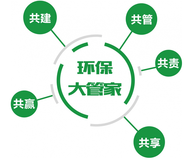 “环保管家”,即向政府、产业园区、企业等对象提供的专业化、定制化、系统化一站式环保托管服务,是一项综合性的环保技术服务工作,可协助政府、园区和企业从环保角度完成产业定位、政策符合分析、区域产业布局、构建循环产业链,环保咨询、环保决策指导、污染治理、环保设施运营、环境风险隐患排查等工作。通过环保管家服务,可有效降低环保管理成本,解决政府、园区和企业各类各阶段问题,从而实现共建、共管、共责、共享、共赢。